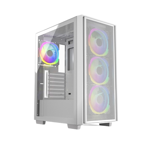 Witte Atx Toren Gaming Computer Pc Case Gehard Glas 360Mm Aio/Radiator Metalen Mesh Paneel Met Abs Frame Pc Toren